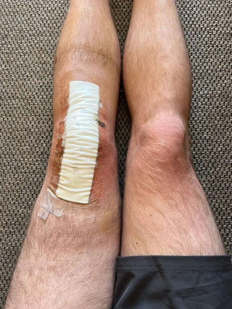 Thankfully, a neighbour was nearby and drove me straight to Chichester Hospital. An X-ray showed the damage — I had ruptured my patella tendon. Within a few days I was in surgery, and the tendon was re-attached through two small holes in the kneecap. That marked the beginning of six months of rehab, physio, and strength work.