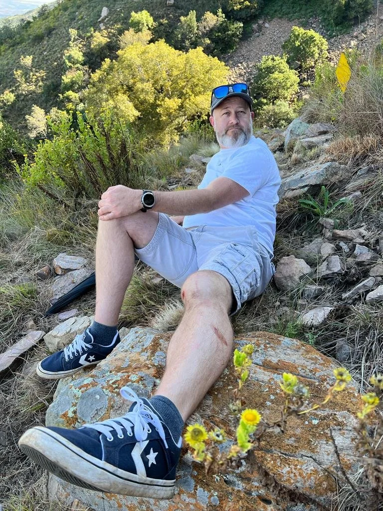 In April 2022, things were looking up. My knee felt stronger, I’d been signed off by the orthopaedic surgeon, and we headed off for a much-needed 16-night break to South Africa. A couple of days before flying home, a group of us went hiking in the Magaliesberg Mountains. While trying to navigate our way back, my mother-in-law slipped down a hillside. I went after her and ended up slipping myself!